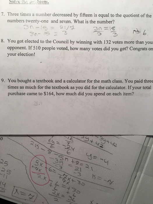 Solved Solve The Iem 7 Three Times A Number Decreased By Chegg Com